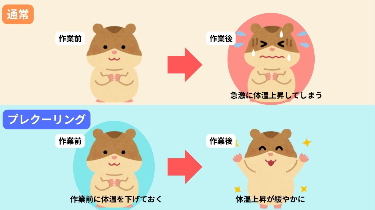 - <p end="58" start="35">内田金属株式会社のメルマガ担当です。</p><p end="127" start="60">8月も終盤に差しかかりましたが、まだまだ厳しい暑さが続いていますね。<br end="97" start="94">さらに、コロナの流行も再び見られるようになってきました。</p><p end="201" start="129">皆さまにおかれましては、どうぞ体調管理に十分ご留意いただき、<br end="162" start="159">引き続き <strong end="183" start="167">感染対策と暑さ対策の両立</strong> に努めていただければ幸いです。</p><p end="240" start="203">今月も役立つ情報をお届けしてまいりますので、ぜひ最後までご覧ください。</p><p end="240" start="203"><br></p><div><strong>熱中症対策「プレクーリング」</strong></div><p end="240" start="203"><strong><br></strong></p><div>プレクーリングとは、<strong end="153" start="116">体が暑さにさらされる前(作業前)に、あらかじめ体温を下げておく方法</strong>です。作業開始前に体の内部の温度(深部体温)を冷やしておくことで、作業中の体温上昇を抑え、熱中症のリスクを軽減します。</div><div>熱中症対策といえば「こまめな水分補給」や「空調服の着用」が一般的ですが、プレクーリングは <strong end="278" start="261">作業を始める前に行う予防策</strong> という点が特徴です。</div><p end="323" start="293"> </p><div><strong>「プレクーリング」の方法</strong></div><div><strong><br></strong></div><div><strong><br></strong></div><div>エアコンのある事務所や熱中症対策ハウスなどの涼しい環境で、保冷剤を身体に当てたり、冷たい飲み物を飲むことで身体を冷やします。始業前や休憩時間などの作業開始前に行いましょう。また飲み物にはアイススラリーがおすすめです。アイススラリーとは細かい氷の粒と水や飲料が混ざり合ったシャーベット状の飲み物のことです。通常の飲み物よりも身体の深部体温を下げることができます。</div><div><br></div><div><br></div><div><strong>熱中症対策ハウスにも暑さ対策を!</strong></div><div><strong><br></strong></div><div><strong><br></strong></div><div>遮熱工事は主に工場・倉庫の天井裏に施工していますが、熱中症対策ハウスにも対応可能です。エアコンを使用しても30℃以下まで温度が下がらなかった熱中症対策ハウスが遮熱シートを施工することで28℃まで下がるようになったとお声をいただいております。 </div><div><br></div><div><div style="text-align:left"><table width="600" cellpadding="0" cellspacing="0"><tbody><tr><td><table cellpadding="0" cellspacing="0" width="100%"><tbody><tr><th><table cellpadding="0" cellspacing="0" width="600"><tbody><tr><td>見積り・ご相談無料です。是非お気軽にお問い合わせください。<br>見積りフォーマットも問い合わせページからダウンロードできます。</td></tr></tbody></table></th></tr></tbody></table></td></tr></tbody></table></div><div style="text-align:left"><table width="600" cellpadding="0" cellspacing="0"><tbody><tr><td width="20"></td><td><table width="100%" cellspacing="0" cellpadding="0"><tbody><tr><td height="10"></td></tr></tbody></table></td></tr></tbody></table></div> <div style="text-align:left"><br></div></div><div><div><table width="600" cellpadding="0" cellspacing="0"><tbody><tr><td><table cellpadding="0" cellspacing="0" width="100%"><tbody><tr><th><br></th></tr></tbody></table></td></tr></tbody></table></div></div>