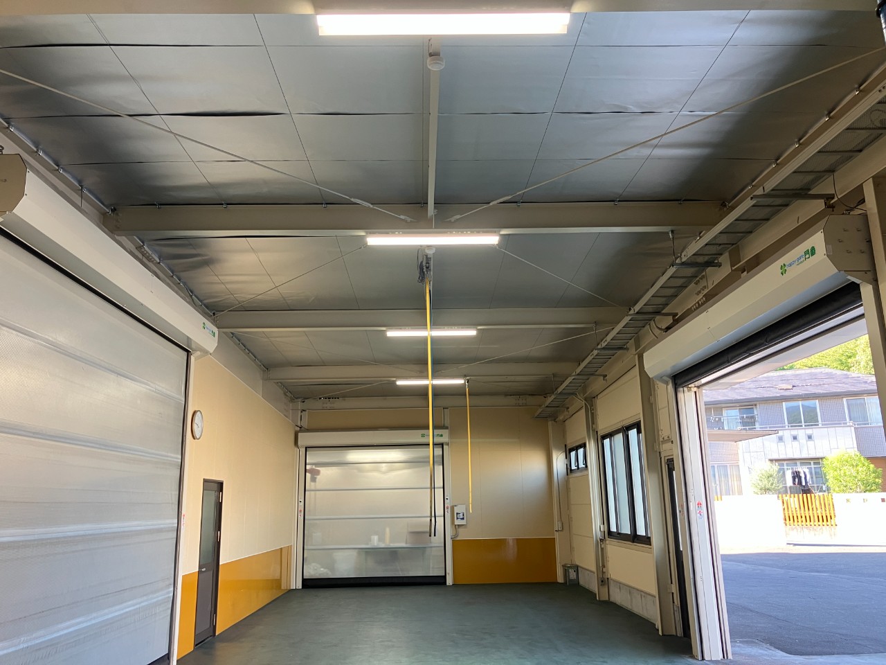 工場入口部分にある製品ストックヤードの暑さ対策を行わせていただき、完了いたしました。完了時期が10月で、気温も下がり始めたため、体感温度(輻射熱遮断効果)は少し感じ難くなっていました。