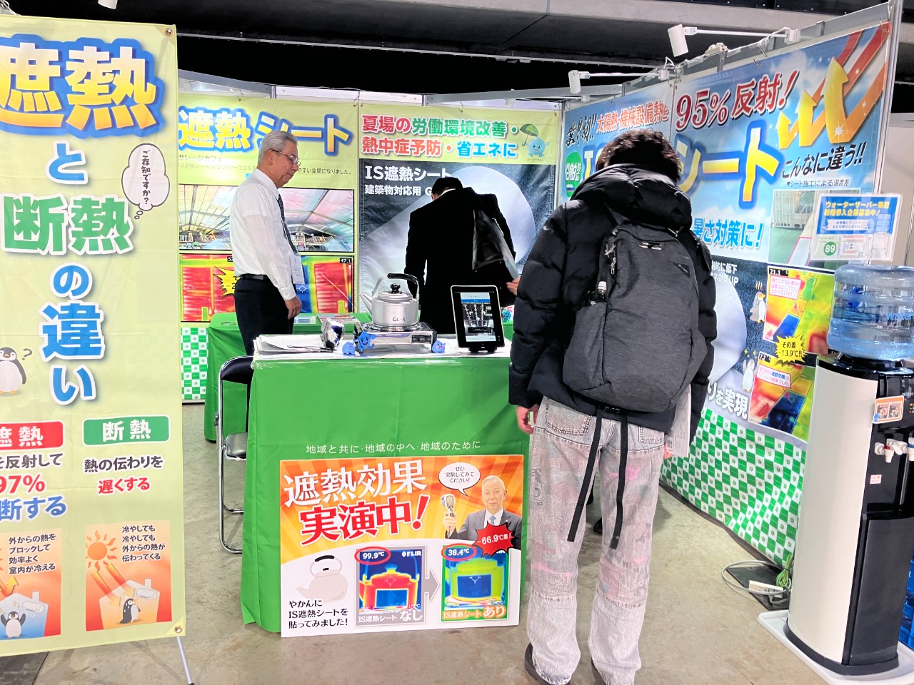内田金属㈱ブースにもたくさんの方にご来場いただき「遮熱シート実証体感」をいただき、効果の大きさに皆様驚かれていました。今後も暑さは続くと思われますので、早めのご相談、対応をお勧めいたします。